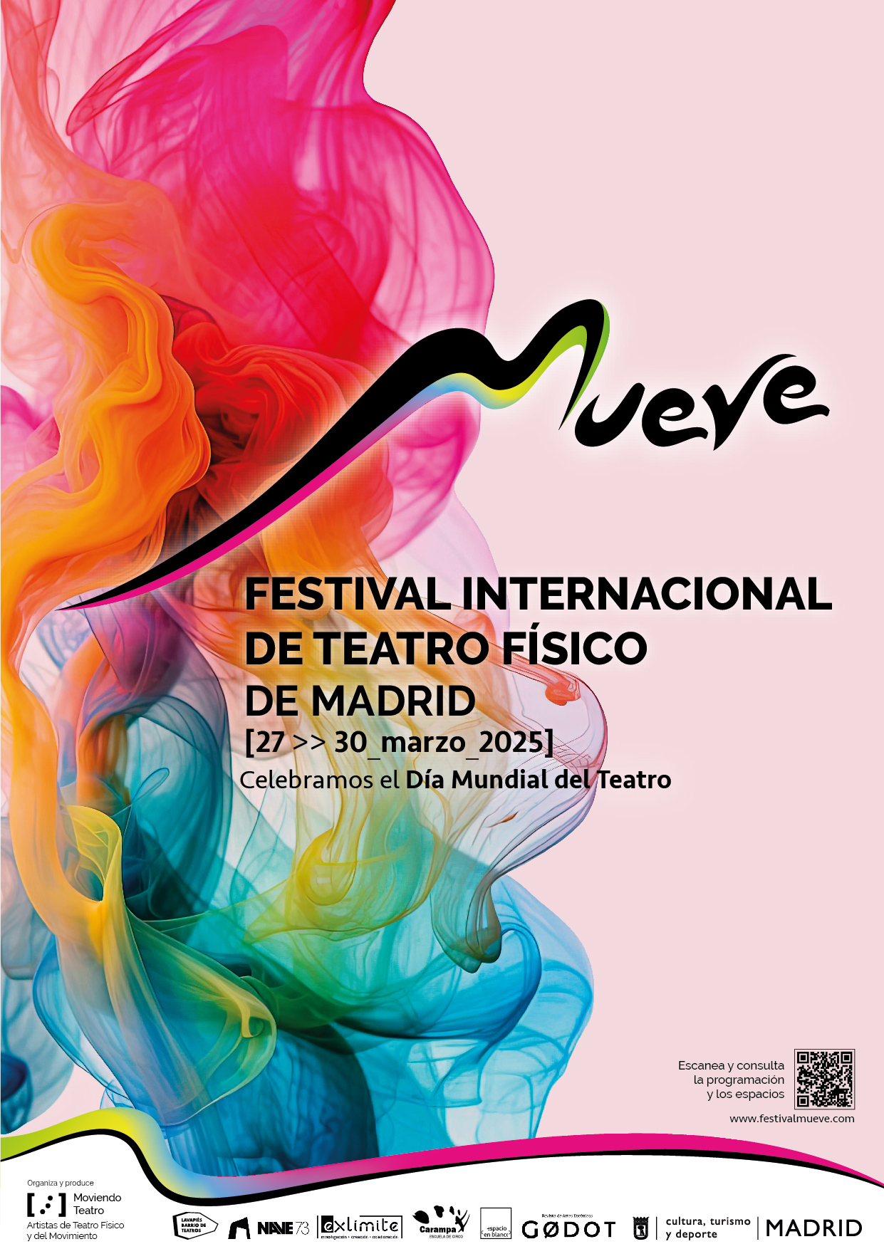 Mueve es el Festival Internacional de Teatro Físico de Madrid que nace como plataforma para promover y apoyar la Creación Escénica Contemporánea, con el firme propósito de fomentar las Artes Escénicas que tienen como punto de partida el Teatro Físico. También nos mueve el deseo de acercar el Teatro al público, haciéndolo partícipe de experiencias escénicas de sala y calle, ofreciendo espacios de formación y divulgación.