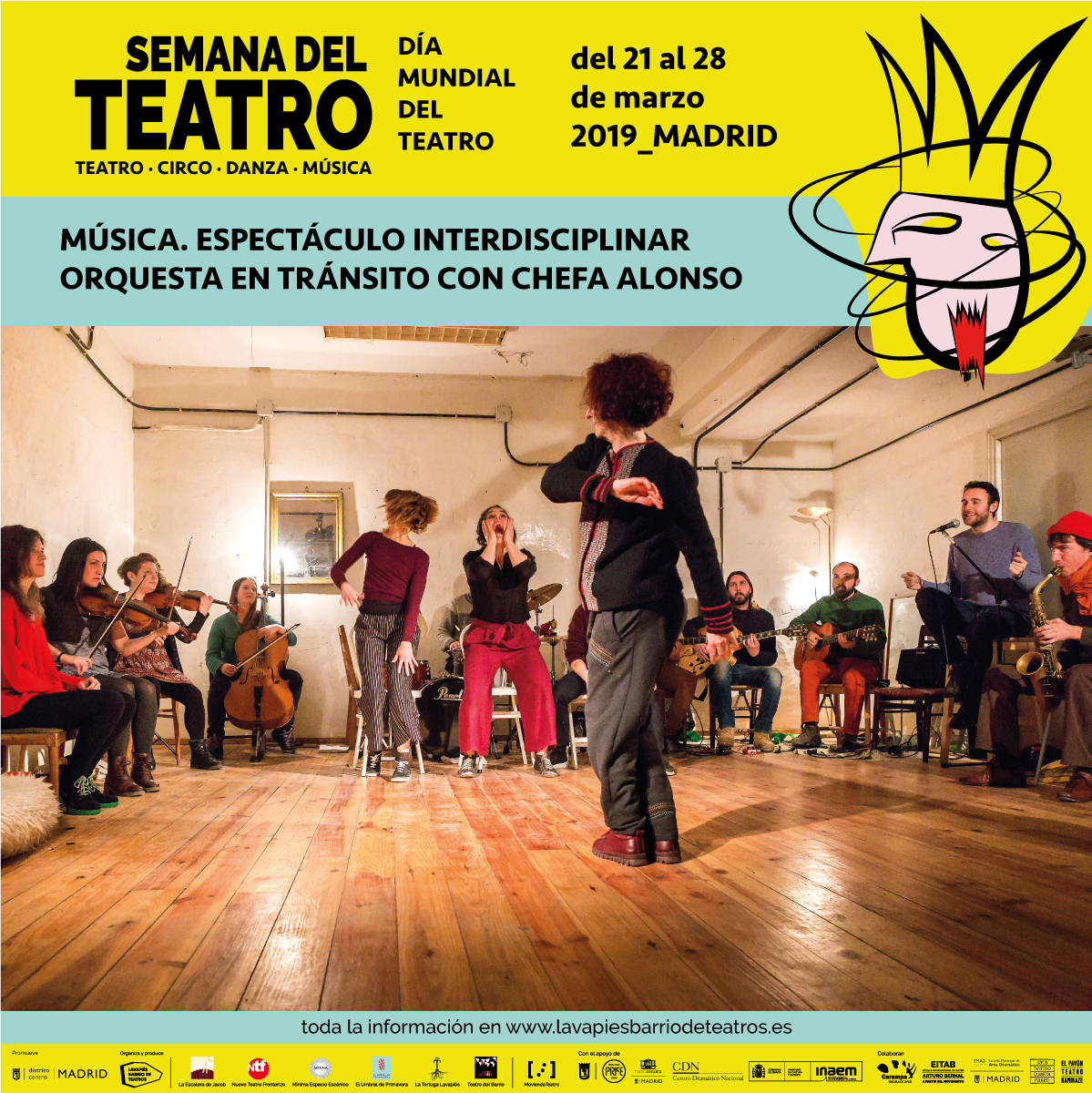 La Orquesta En Tránsito ofrece un espectáculo interdisciplinar contemporáneo que está esencialmente vinculado a la improvisación, a la conducción y a la mezcla de géneros y estilos musicales y escénicos que, desde una perspectiva fresca y actual, aparecen y desarrollan ambientes de circo, jazz, baile, folclores del mundo; pequeñas ventanas que se abren y nos permiten ver y sentir otras geografías, paisajes sonoros inesperados, escenas imprevistas, movimientos que cruzan fronteras.